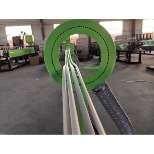 Mstari wa uzalishaji ni pamoja na sehemu zifuatazo: Mfumo wa usindikaji wa malighafi, mfumo wa povu, mfumo wa extrusion, mfumo wa baridi, mfumo wa kukata, na mfumo wa ufungaji.